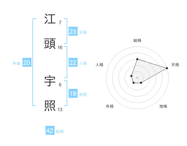 江頭 宇照さんを姓名の画数から五運を鑑定