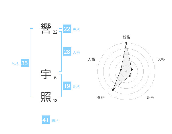 響 宇照さんの総格は41画の5点!