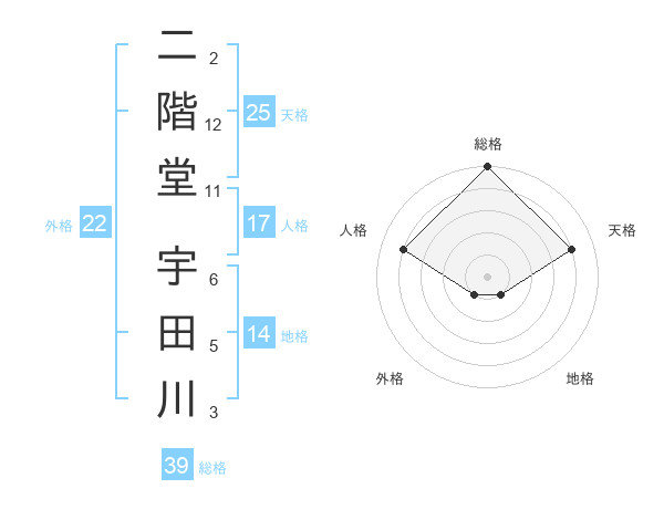 二階堂 宇田川さんを姓名の画数から五運を鑑定