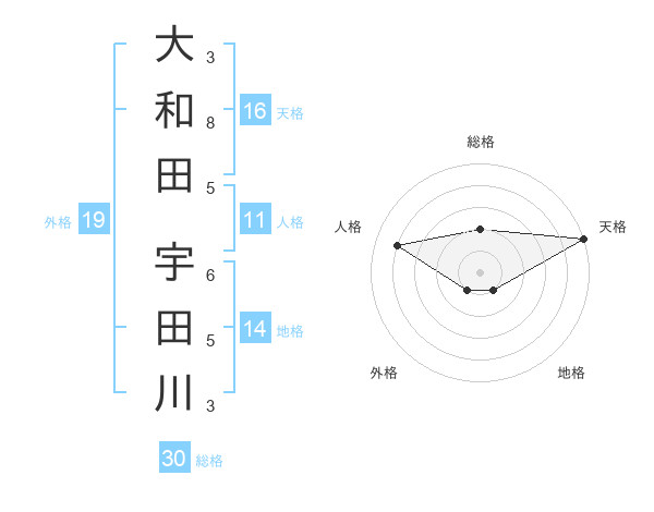 大和田 宇田川さんを姓名の画数から五運を鑑定