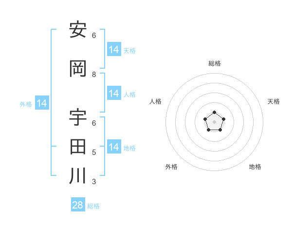 安岡 宇田川さんを姓名の画数から五運を鑑定
