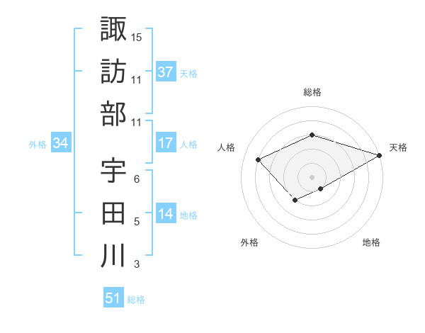 諏訪部 宇田川さんの総格は51画の3点!