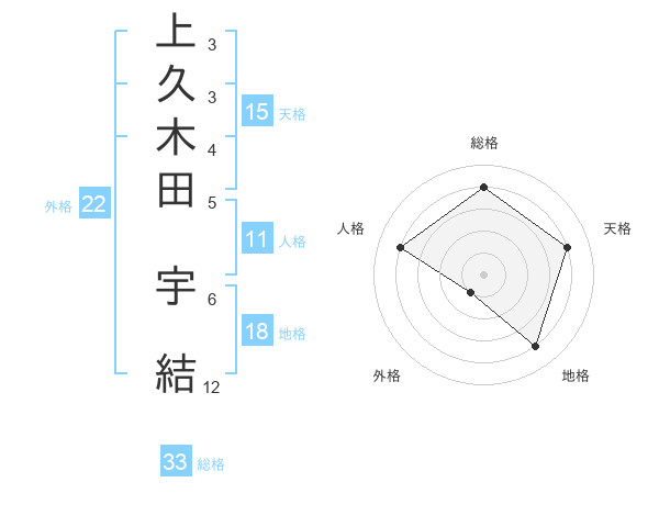 上久木田 宇結さんを姓名の画数から五運を鑑定