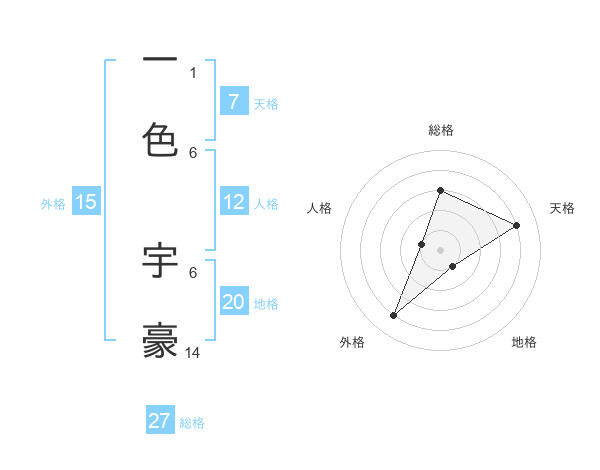 一色 宇豪さんの外格は15画の4点!