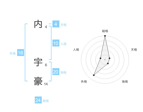 内 宇豪さんの総格は24画の5点!
