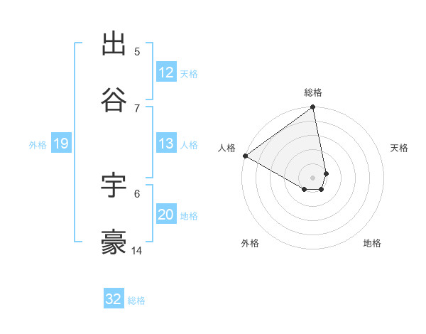 出谷 宇豪さんの総格は32画の5点!