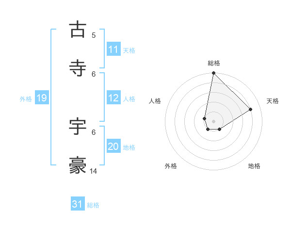 古寺 宇豪さんの総格は31画の5点!