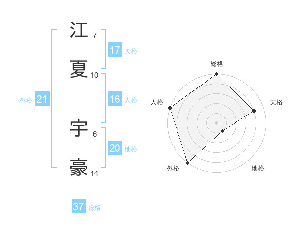 江夏 宇豪さんの総格は37画の5点!