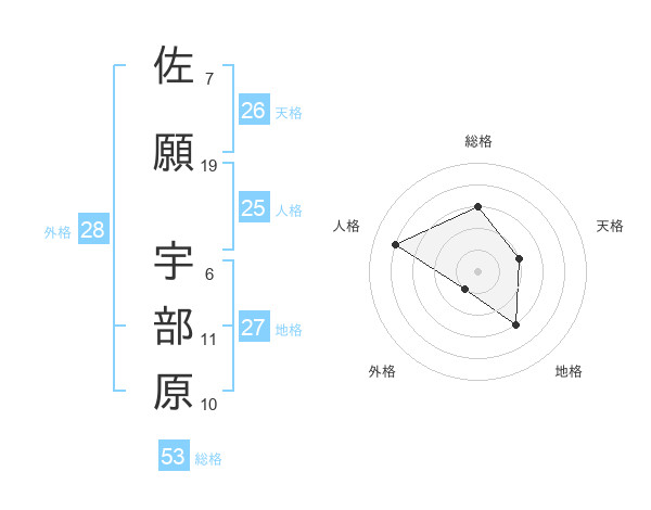 佐願 宇部原さんを姓名の画数から五運を鑑定