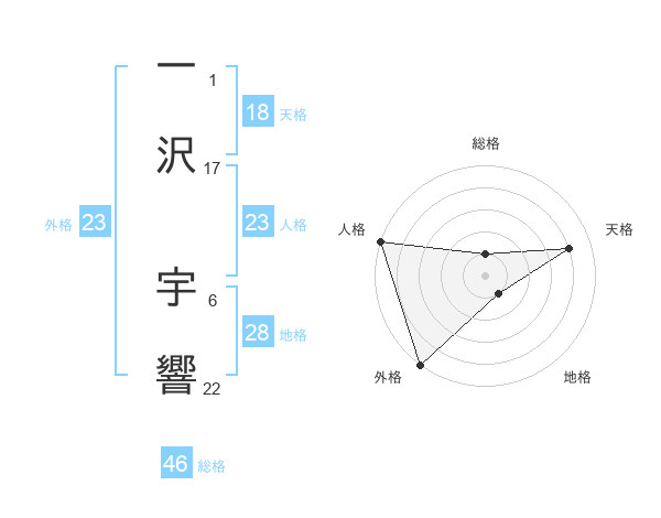 一沢 宇響さんの人格は23画の5点!