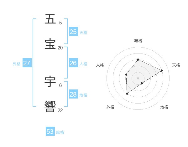 五宝 宇響さんの総格は53画の3点!