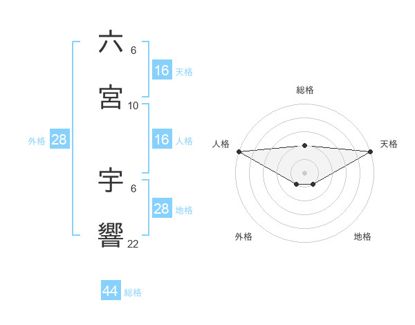 六宮 宇響さんを姓名の画数から五運を鑑定
