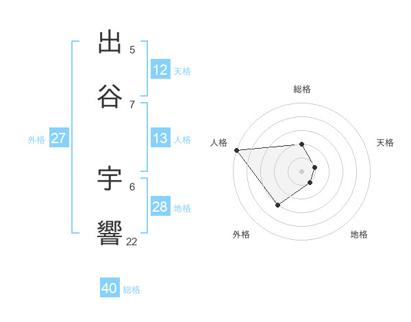 出谷 宇響さんの総格は40画の2点!