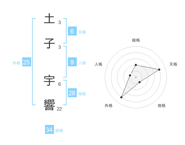 土子 宇響さんの総格は34画の2点!