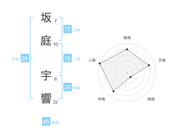 坂庭 宇響さんの総格は45画の4点!