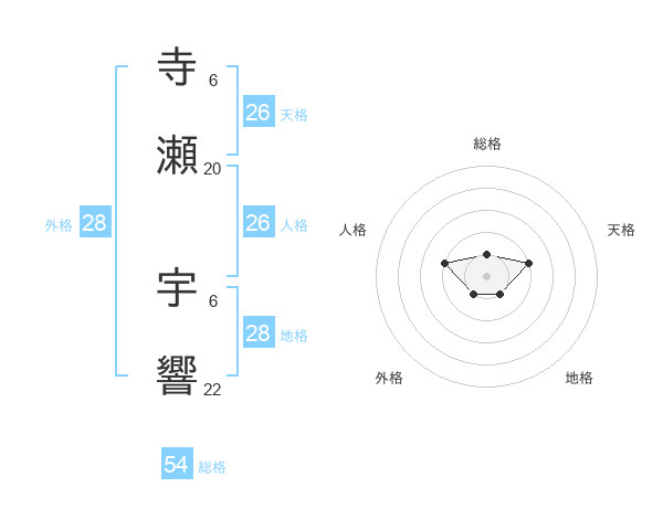 寺瀬 宇響さんの総格は54画の1点!