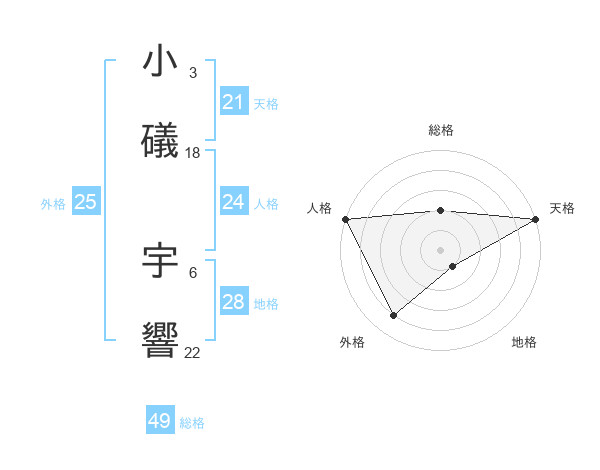 小礒 宇響さんを姓名の画数から五運を鑑定