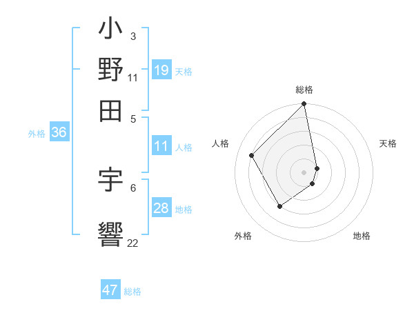 小野田 宇響さんを姓名の画数から五運を鑑定