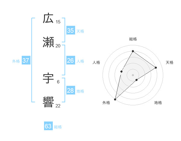 広瀬 宇響さんを姓名の画数から五運を鑑定
