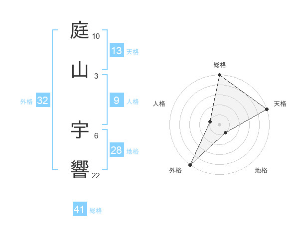 庭山 宇響さんの総格は41画の5点!