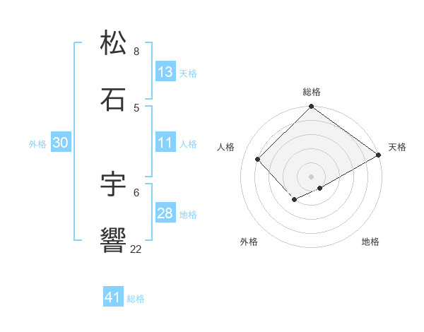 松石 宇響さんの総格は41画の5点!