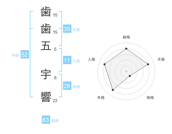 歯歯五 宇響さんを姓名の画数から五運を鑑定