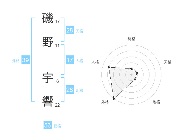 磯野 宇響さんの外格は39画の5点!