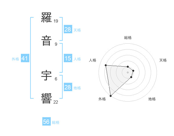羅音 宇響さんを姓名の画数から五運を鑑定