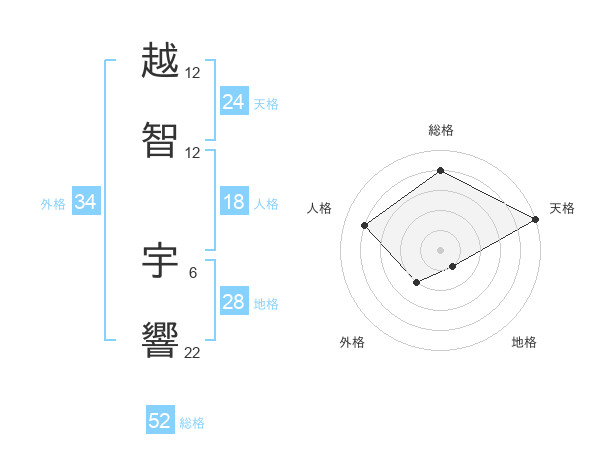越智 宇響さんの総格は52画の4点!