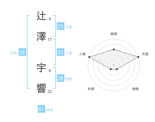 辻澤 宇響さんを姓名の画数から五運を鑑定