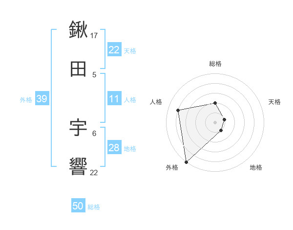 鍬田 宇響さんの総格は50画の2点!