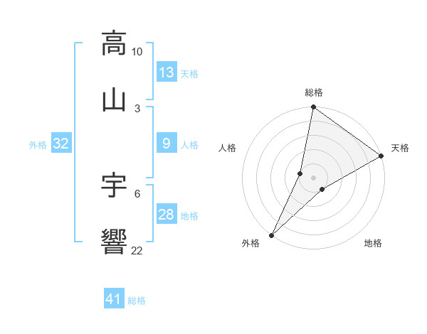 高山 宇響さんの総格は41画の5点!