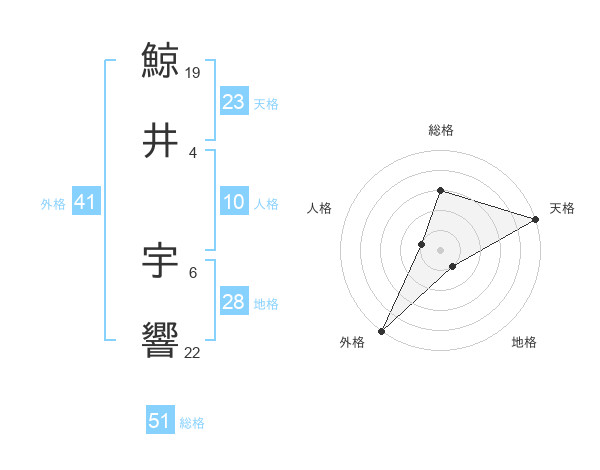 鯨井 宇響さんを姓名の画数から五運を鑑定