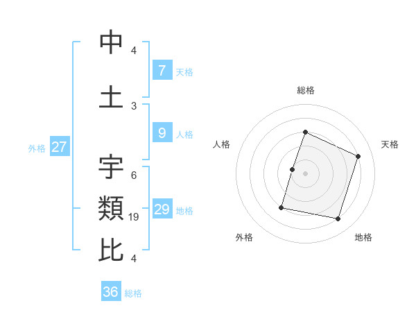 中土 宇類比さんを姓名の画数から五運を鑑定