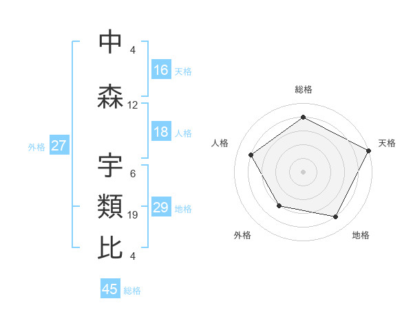 中森 宇類比さんを姓名の画数から五運を鑑定