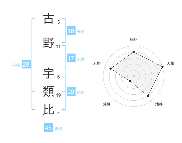 古野 宇類比さんを姓名の画数から五運を鑑定
