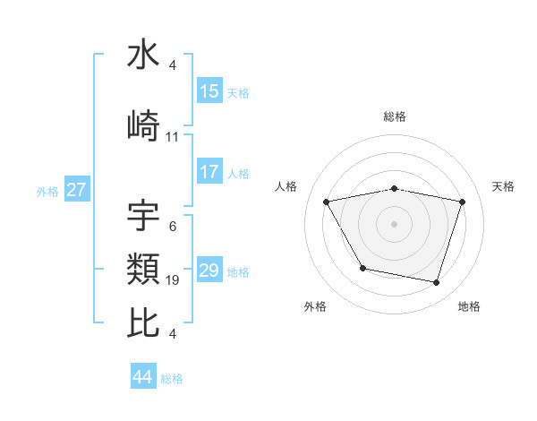 水崎 宇類比さんを姓名の画数から五運を鑑定