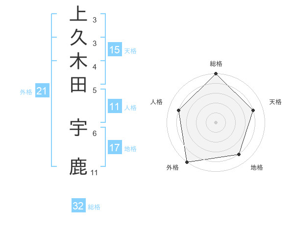 上久木田 宇鹿さんを姓名の画数から五運を鑑定