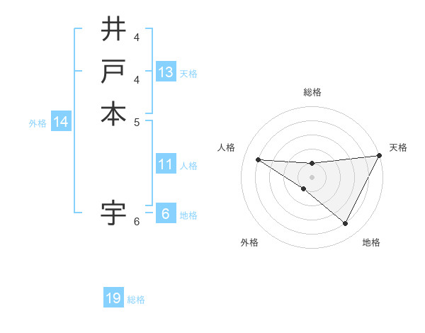 井戸本 宇さんの天格は13画の5点!