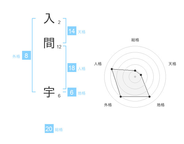 入間 宇さんの総格は20画の1点!