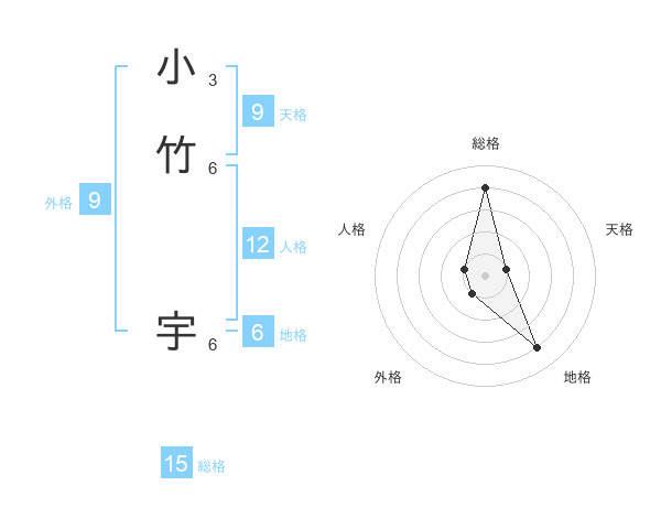 小竹 宇さんの総格は15画の4点!