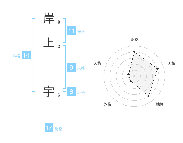 岸上 宇さんの総格は17画の4点!