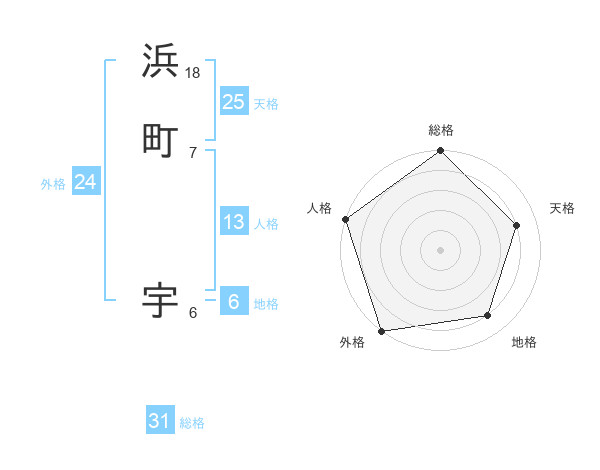 浜町 宇さんの総格は31画の5点!