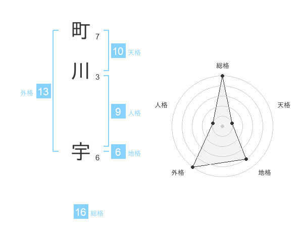 町川 宇さんの総格は16画の5点!