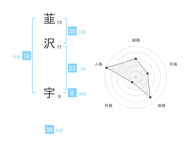 韮沢 宇さんの天格は30画の2点!