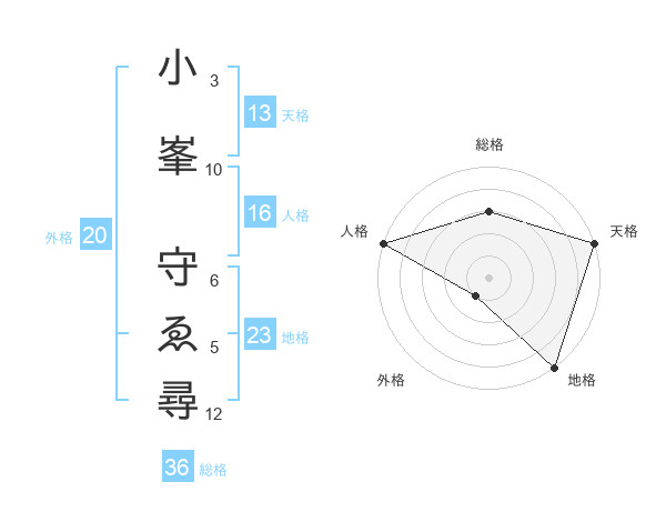 小峯 守ゑ尋さんの天格は13画の5点!