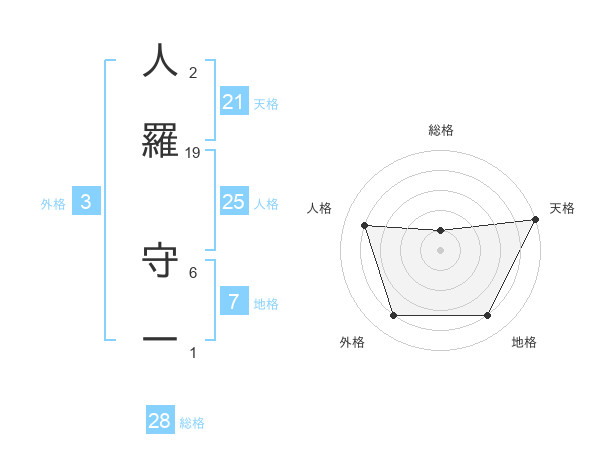 人羅 守一さんの天格は21画の5点!