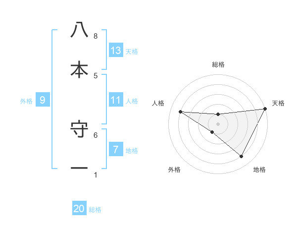 八本 守一さんの天格は13画の5点!