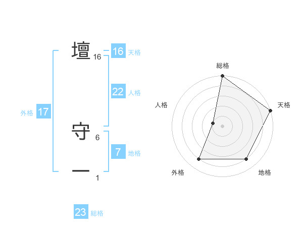 壇 守一さんの外格は17画の4点!