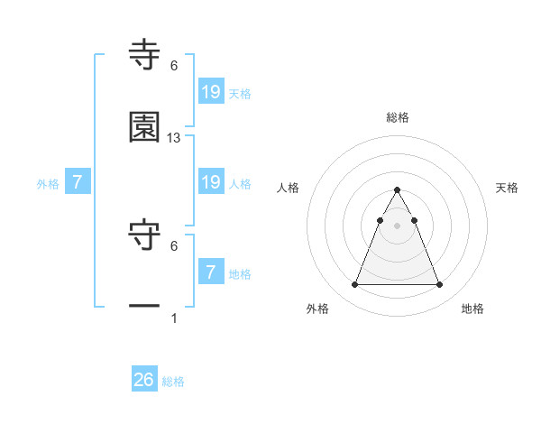 寺園 守一さんの天格は19画の1点!